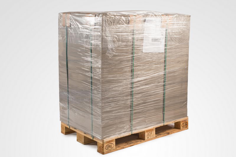 Mit Schrumpfhauben lassen sich beladene Europaletten komplett binden und sichern.
